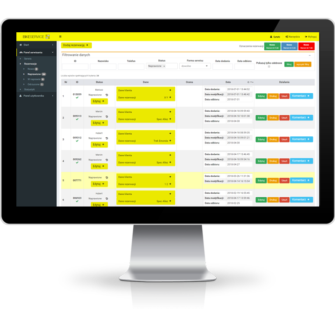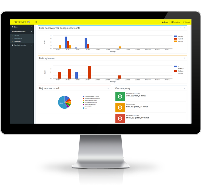 Systemet underlättar det pågående arbetet med webbplatser från hela Polen. Det låter dig enkelt planera mekanikens arbete, kontrollera reparationsförloppet, förenkla och påskynda kundkontaktprocessen. Dessutom erbjuder den omfattande statistik över reparationer, fel, mekanikens arbetstid och en fullständig historik om aviseringar. Å andra sidan har en mobilapplikation (Android, iOS) utarbetats för kunder. Med sin hjälp kan du bland annat boka snabbt ett besök hos den valda tjänsten eller kontrollera reparationens status