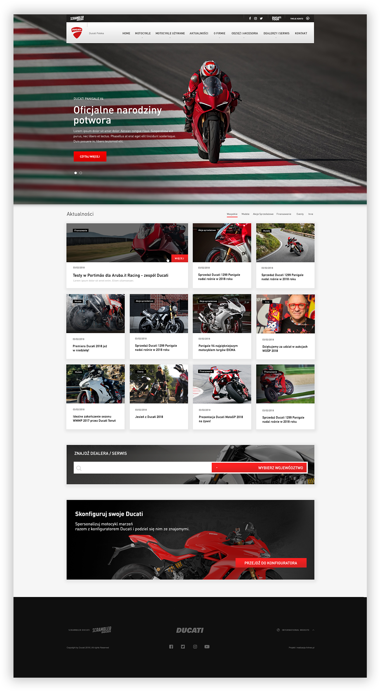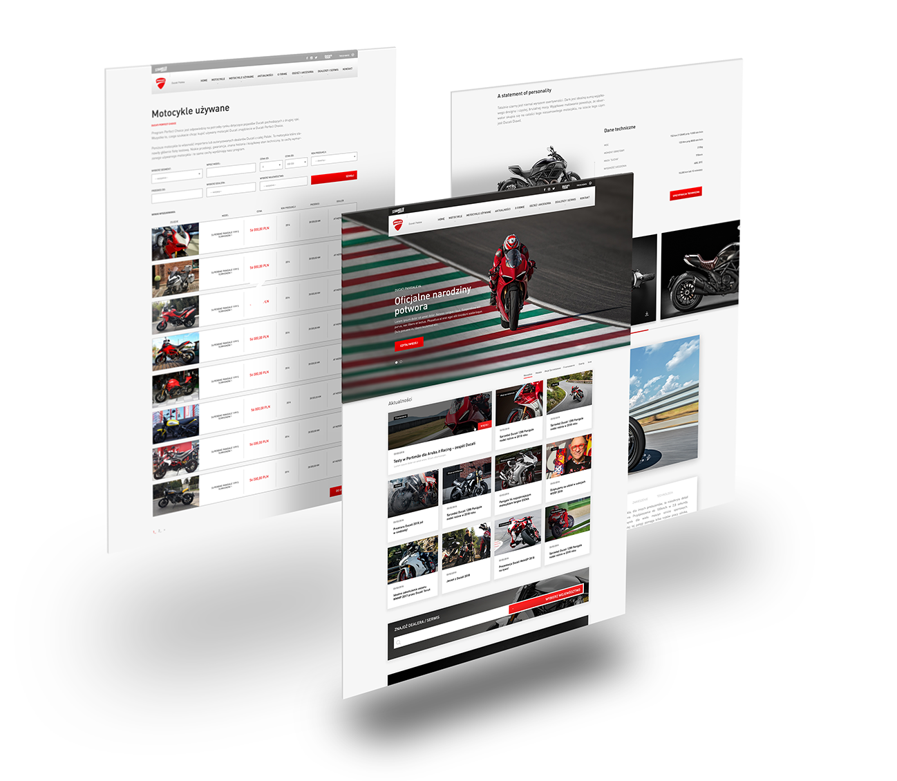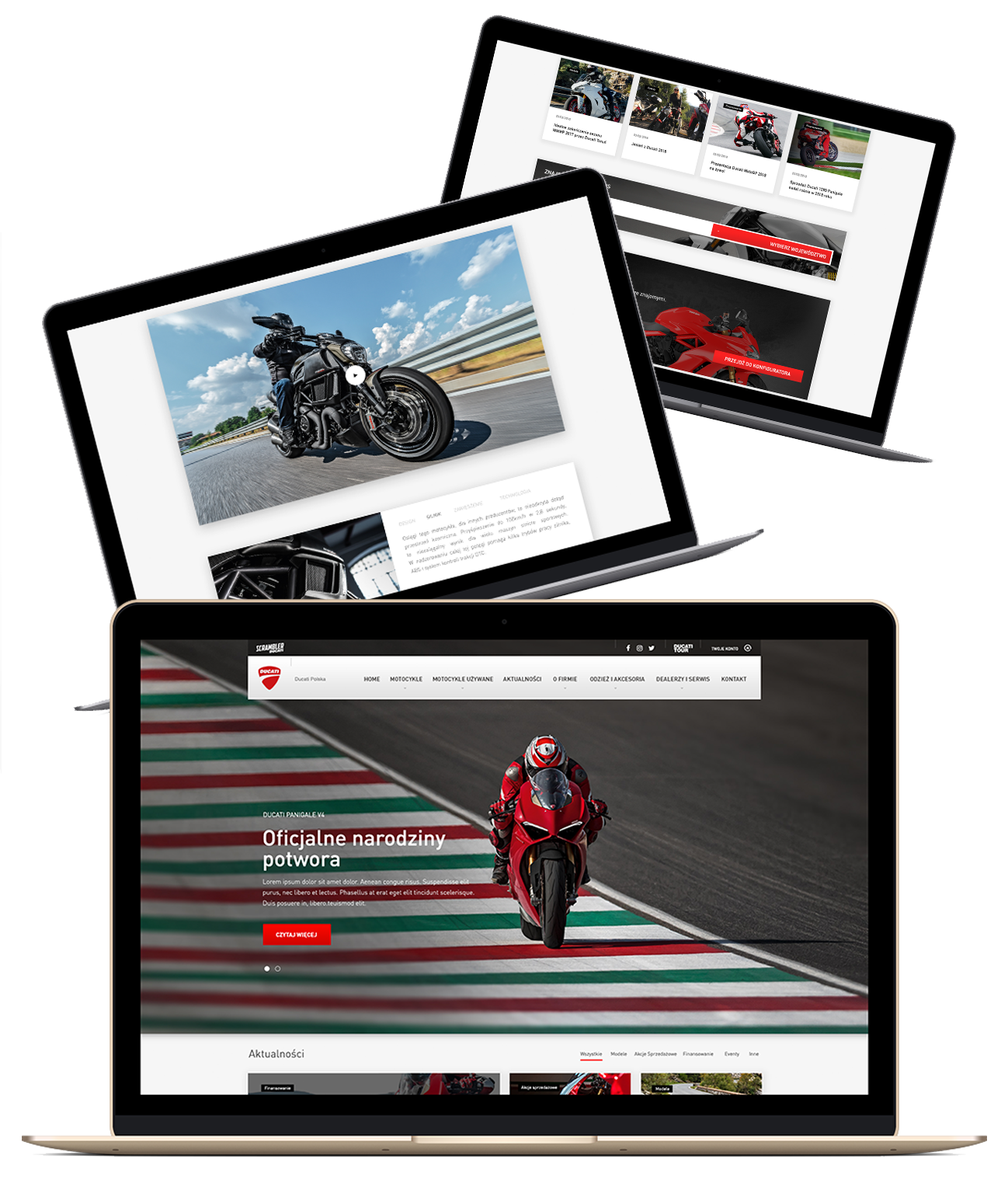 En sportprestanda, italiensk stil, tre körlägen. Webbplatsen av Ducatis ensamma polska återförsäljare.